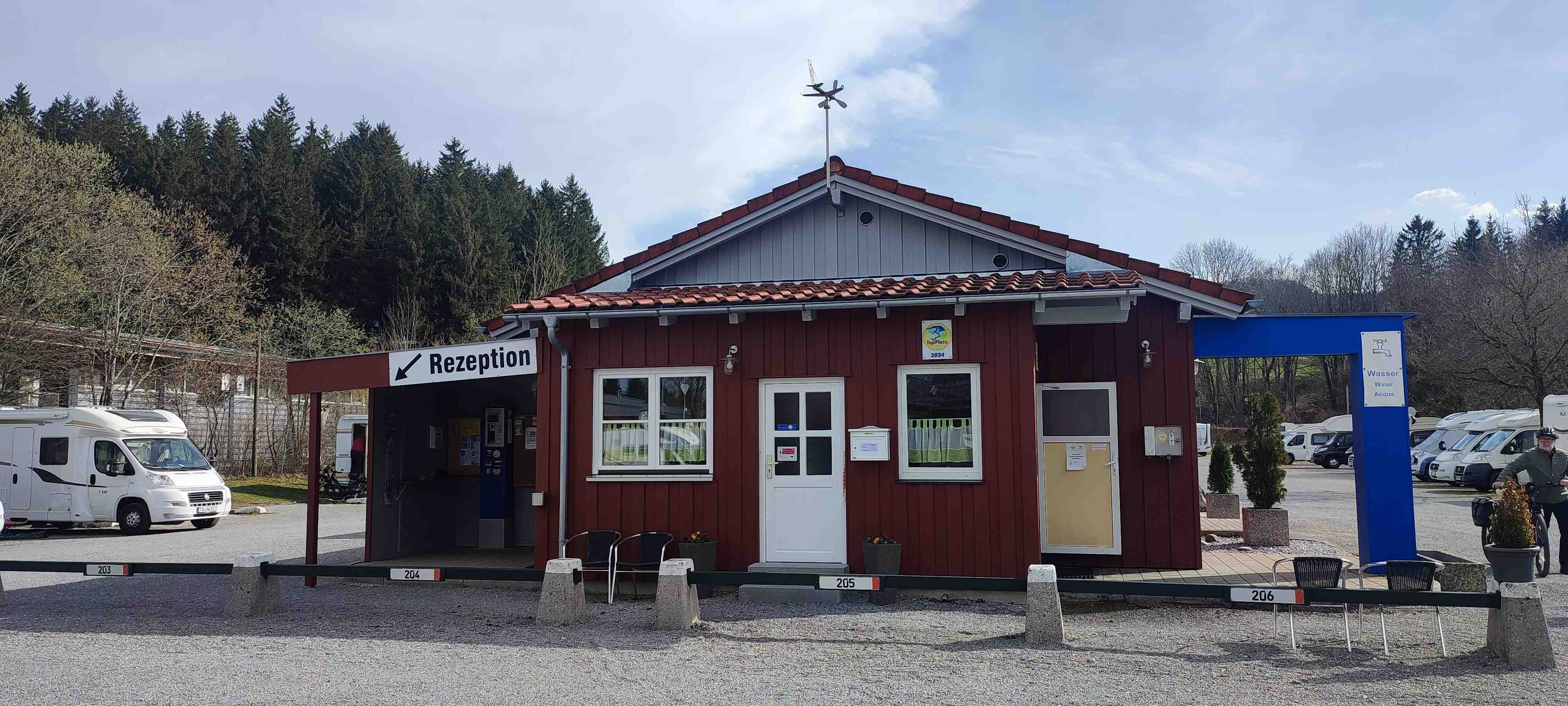 Suchen Sie sich zuerst einen Platz und bezahlen Sie dann an unserem Parkscheinautomat. Nur Kartenzahlung möglich. Bitte das 2. Ticket ausfüllen und in die Anmeldebox werfen. Am Abreisetag ist der Platz bis 16:00Uhr zu verlassen. !!KEINE WOHNWAGEN ERLAUBT!!