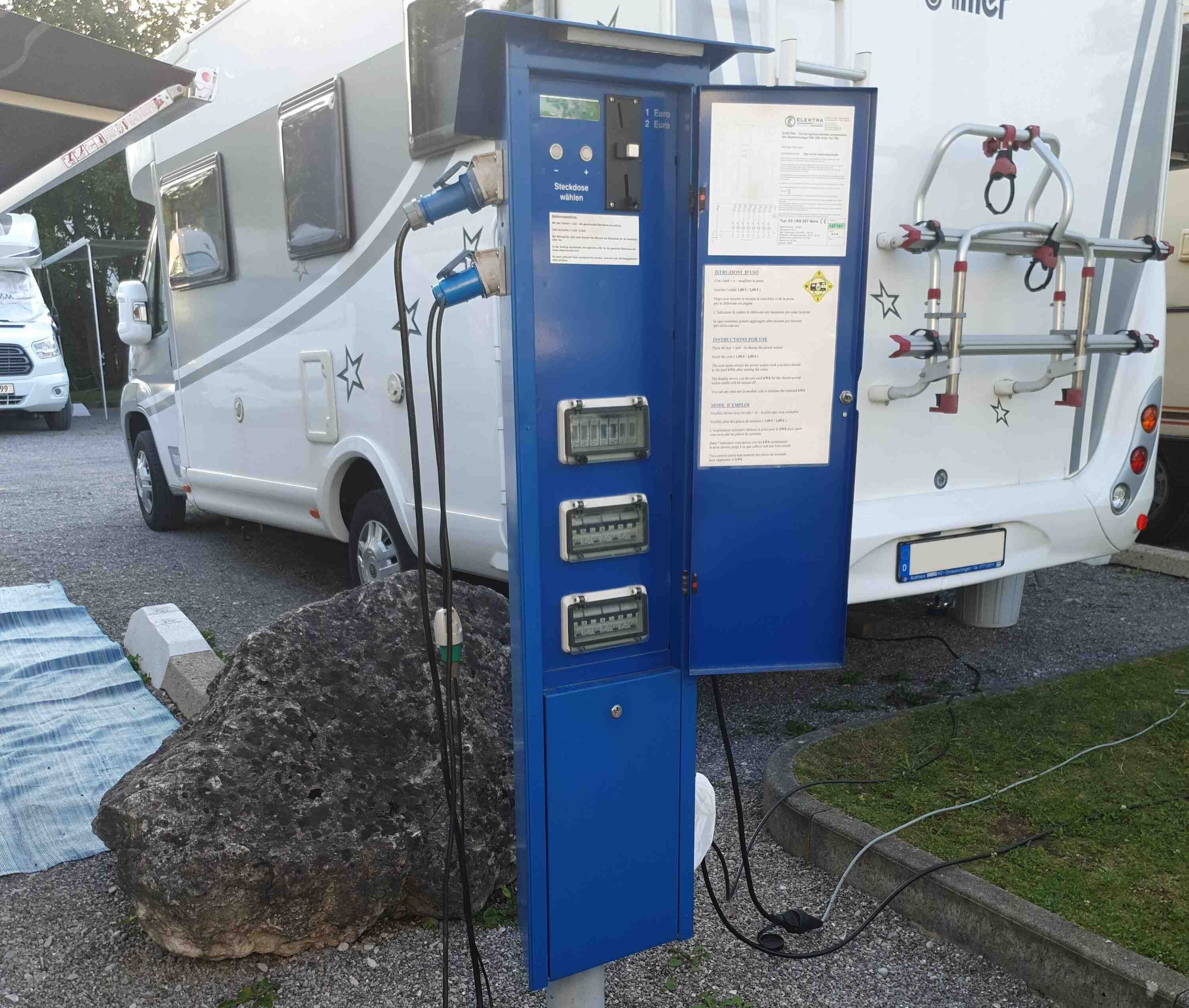 Zu jeder Parzelle finden Sie in unmittelbarer Nähe Ihren Stromanschluss, welcher Sie bei Bedarf mit 16 Ampere versorgt.